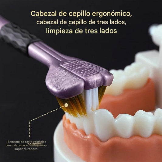 TriBrush™ OrthoTech – Con Triple Cabezal Y Tecnología De Cerdas De Carbón Volcánico, Diseñado Para Una Limpieza 360° .