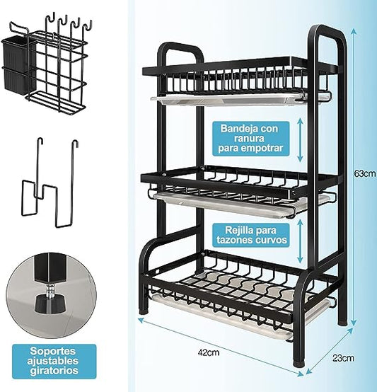 Escurridor de platos 3 niveles l Acero inoxidable l Diseño elegante