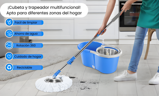 Trapero Giratorio 360º + Balde Escurridor + 2 mopas + Envío gratis