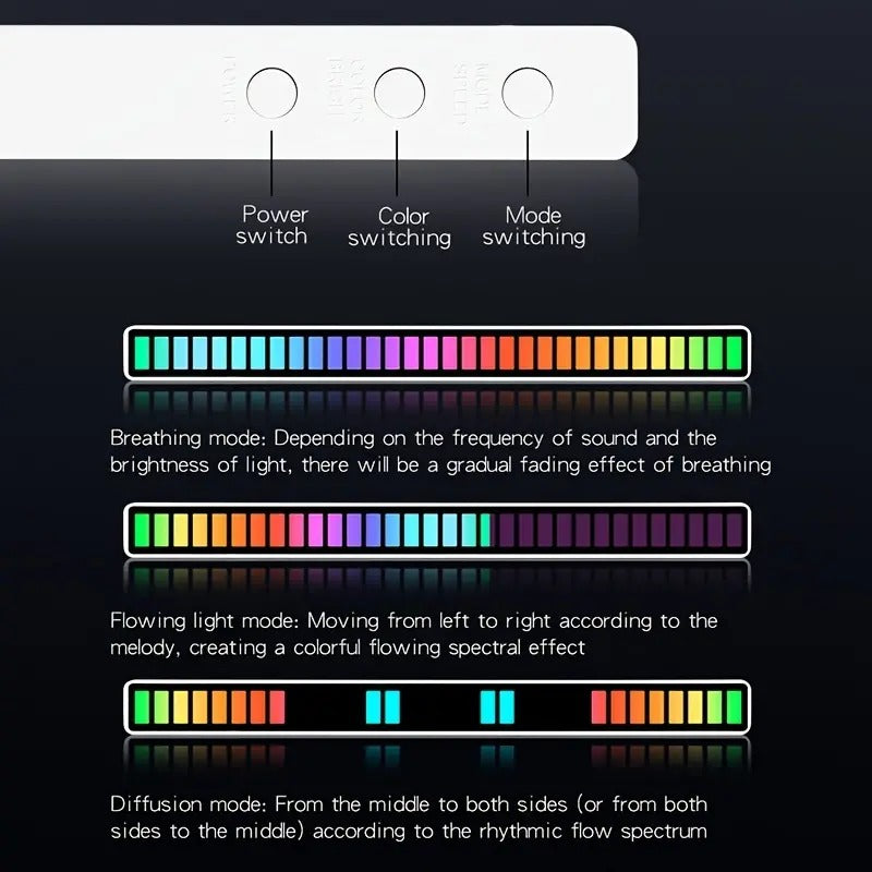 Nuestra barra led con sensores de sonido es capaz de detectar cualquier canción mediante luces RGB y proyectarla.
